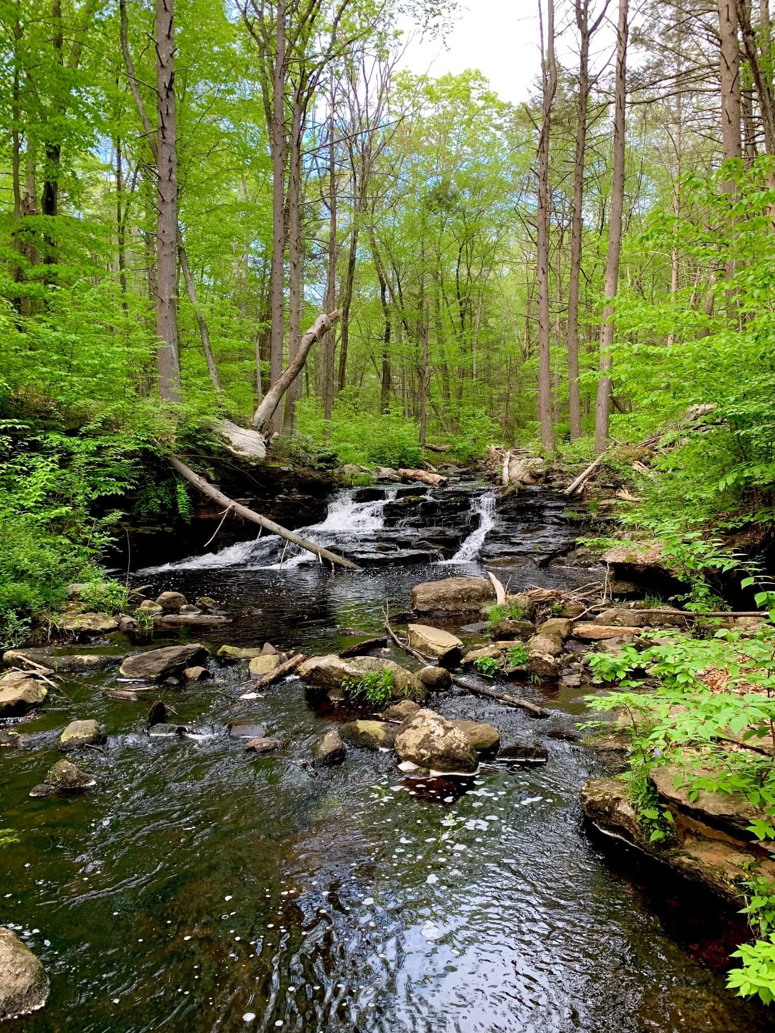 Starting at the cul-de-sac on Cream Pot Road in Durham, moderate trails travel south along the ridge and through the woodlands. Two trails, the Mattabesett and Mica Ledges, run parallel with cross trails connecting them, to provide a loop trail if desired. A shorter hike to one of the overlooks and return provides another option.