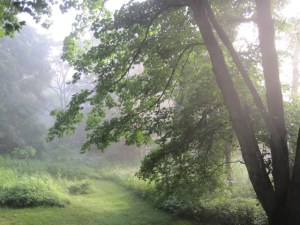 Haddam Reservoir 04.29.13 002 Seeing no clear way to continue along the reservoir, we returned to the trail and encountered two women walking three barking dogs. We were glad to move past them and find the source of the reservoir, a lovely stream flowing over rock outcrops. Reaching the other trailhead, we backtracked, staying on the official trail. Cherry asked about my recent trip to Stockholm and Denmark and I told her about the various foods and sights we’d seen. By then, we had returned to our parked car.