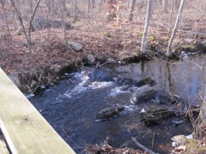 It isn’t long before we reach an intersection with blue and then orange trails, which we take about a half mile toward our parked car. A series of well-made bridges cross cascading brooks and we even see a skunk cabbage peaking out prematurely. After two hours, we are back at our second car and retrace our route to pick up the first car. Cherry remarks on the ease of the hike, which is primarily flat through deciduous woods. “Much easier that Mattabessett,” she notes.